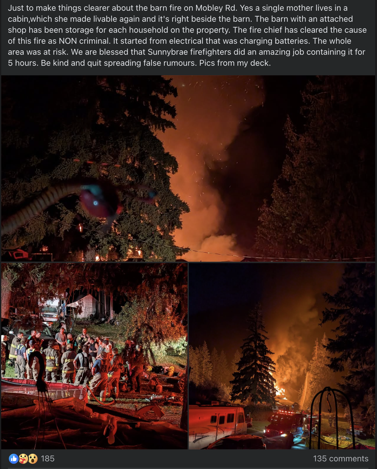 If you thought Salmon Arm’s biggest drama was semis blowing red lights, buckle up. A barn fire on Mobley Rd lit more than just rafters, it torched Facebook into a 200+ comment battlefield of sympathy, skepticism, and squatter accusations.